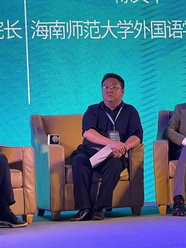 我院陈义华院长受邀参加了圆桌会议。本次圆桌会议珠三角定级企业代表,珠三角高校代表共计六人做了分享,陈义华教授作为海南自贸港高校代表受邀参与了这一环节。陈义华教授围绕海南自贸港背景下翻译人才的培养做了发言。他指出,目前海南自贸港建设正处于起飞阶段,社会各个行业对语言知识扎实、具备丰富实操经验的翻译人才有着极大的需求,但目前海南高校对于翻译人才的培养与企业需求存在一定程度的脱节,学生缺少进行翻译实操机会。陈院长希望,高校和相关企业能够加强交流和合作,高校需要深入了解企业对于翻译人才的具体需求,企业也应主动地为高校翻译人才培养方案、课程建设、实习实践方案提供咨询。同时,陈义华教授也希望双方在学生实习实训、翻译模拟实训室建设、商务谈判模拟实训室、大型会议翻译模拟实训室的建设进行合作,同时也希望企业翻译工作者能够作为行业教师进入大学课堂,讲授相关课程。陈义华教授最后也提出了双方建立长效的合作机制的构想,得到了与会人士高度评价。