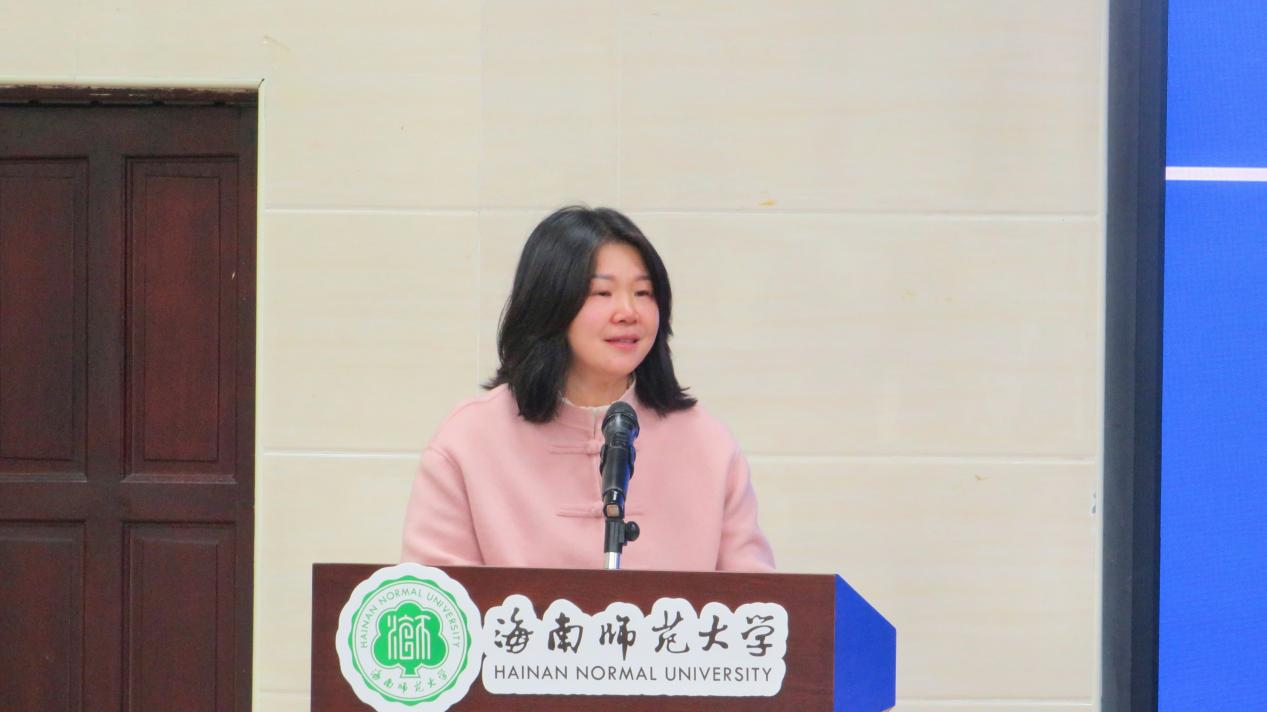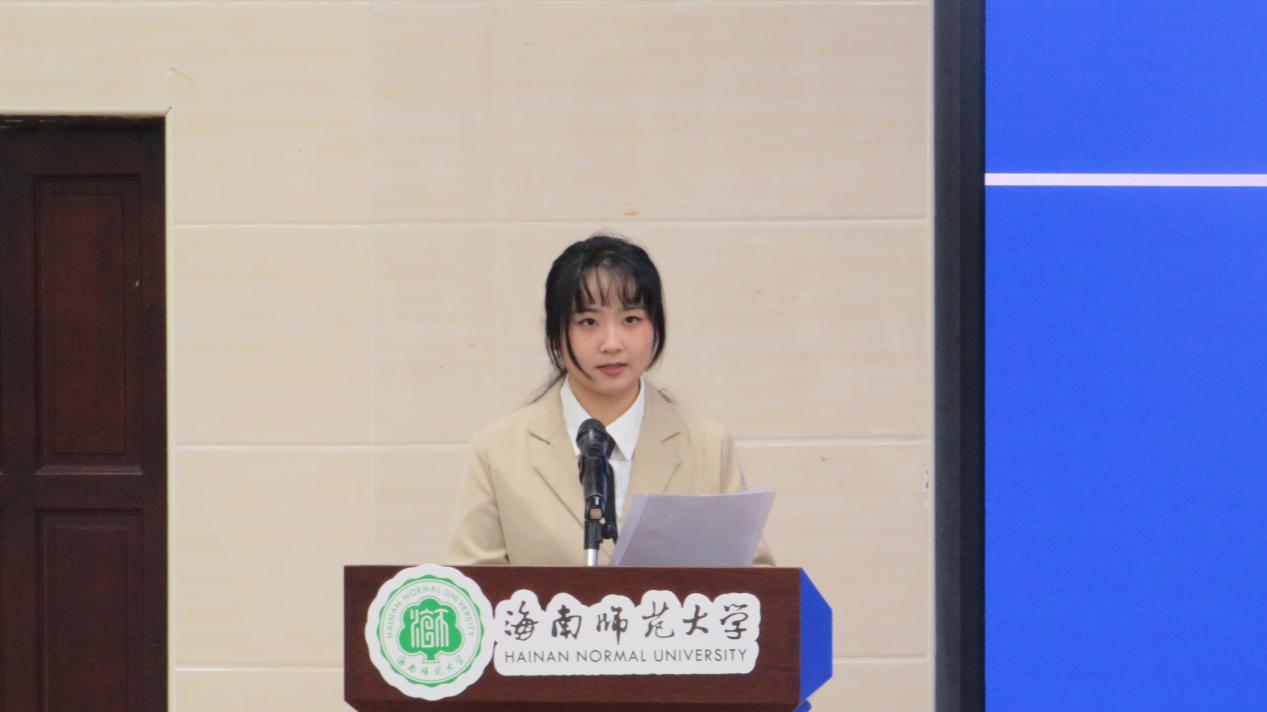 老志愿者代表2022级英语8班刘林果发言。她分享了自己两次参与博鳌志愿服务的经验,强调要遵守纪律、注重细节、加强团队协作,传递正能量,展现海师志愿者良好风采。她还讲述了前辈志愿者的故事,传递出志愿服务精神传承的重要性。