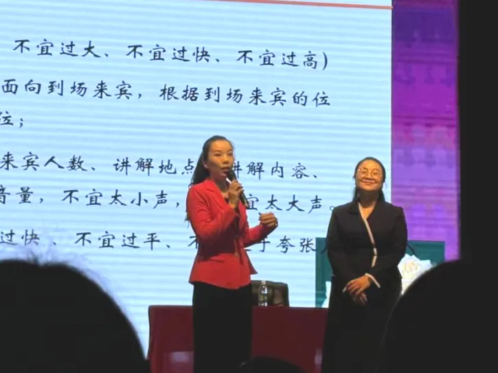 在分享会上,志愿讲解导师高丽、蒋秀娟,以及优秀讲解员余怡敏带来了经验分享。他们展示了往年和美乡村讲解工作中的高光时刻,分享内容围绕讲解工作的全流程展开,从如何深挖讲解内容、快速记忆讲解词,到临场应变的小技巧、容易忽视的注意事项,再到从事讲解工作的感悟与成长、对未来的展望。