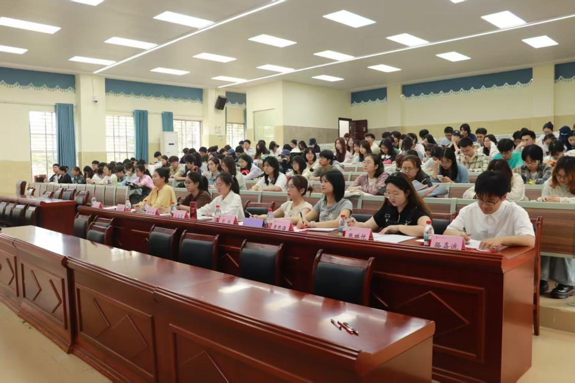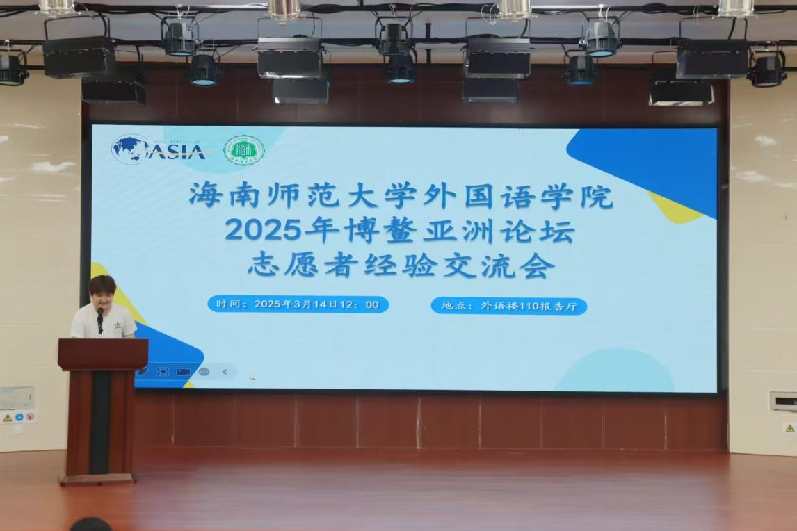 为提高志愿者们的专业技能,确保博鳌亚洲论坛年会的顺利举办。2025年3月14日中午,外国语学院于海南师范大学(桂林洋校区)外语楼110报告厅举行2025年博鳌亚洲论坛志愿者经验交流会。参会的人员有博鳌亚洲论坛2025年年会志愿者工作小组组长外国语学院杨白全副书记、联络员张群燕老师以及外院175名博鳌亚洲论坛2025年年会志愿者(其中20名志愿者因上岗、生病等原因请假)。