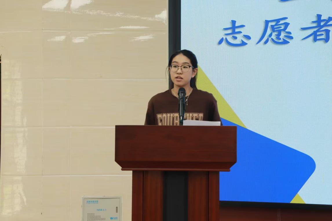2022级英语5班师可意同学分别从使命与责任、实践与成长、收获与感悟、传承与展望四个方面为大家分享了经验。她强调志愿者们在文化传播中起着不可或缺的桥梁作用,与此同时,她也希望论坛志愿者们能够始终以饱满的热情投入年会当中,去向世界展示海南的开放与活力,展现中国青年强有力的力量,用语言打破壁垒,用行动连接世界。