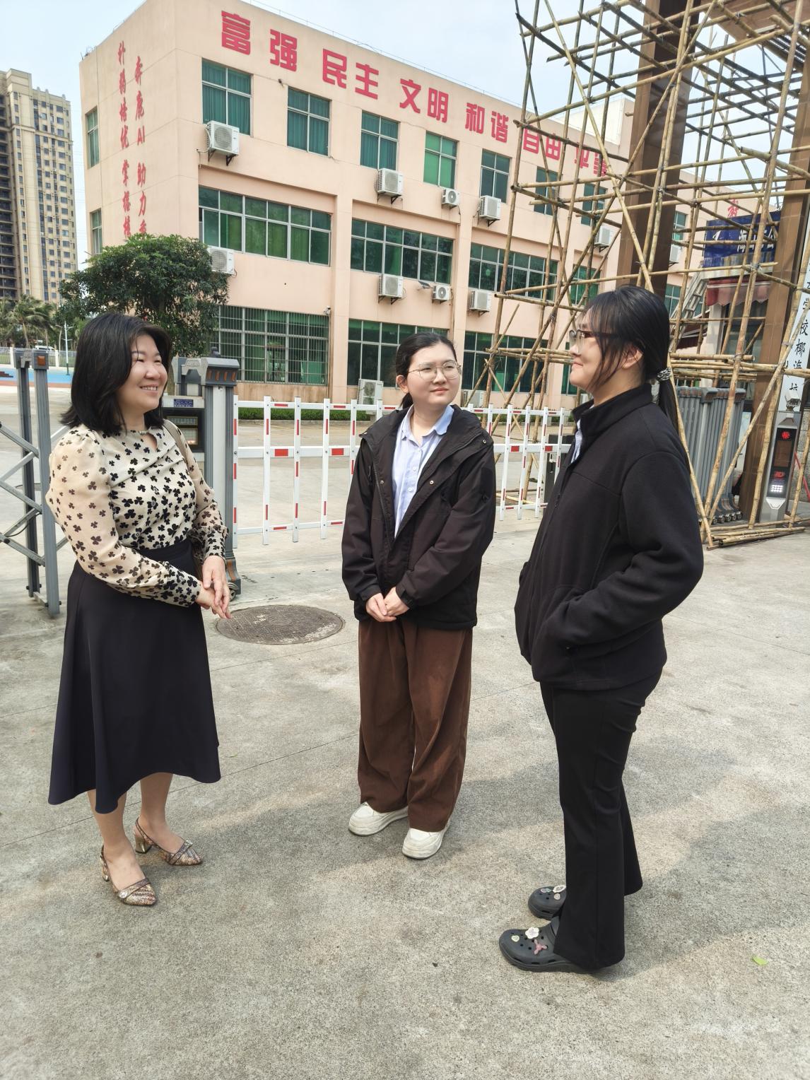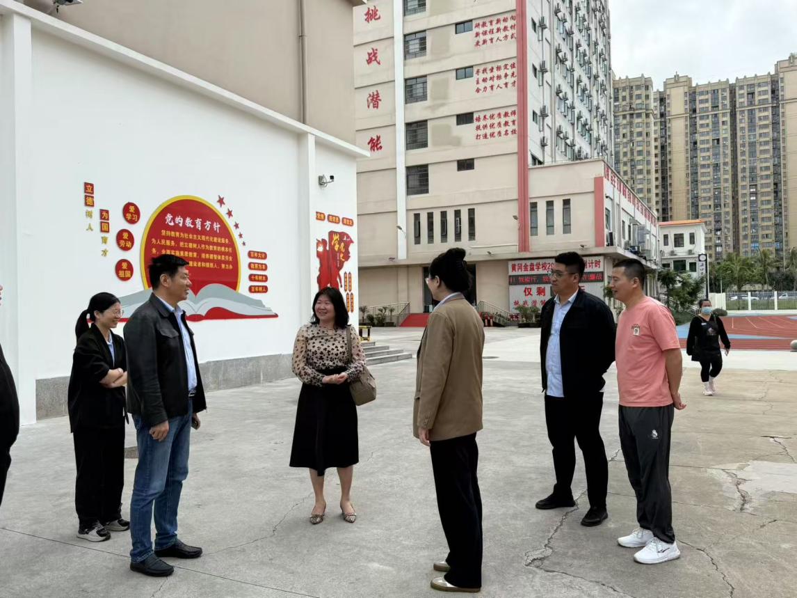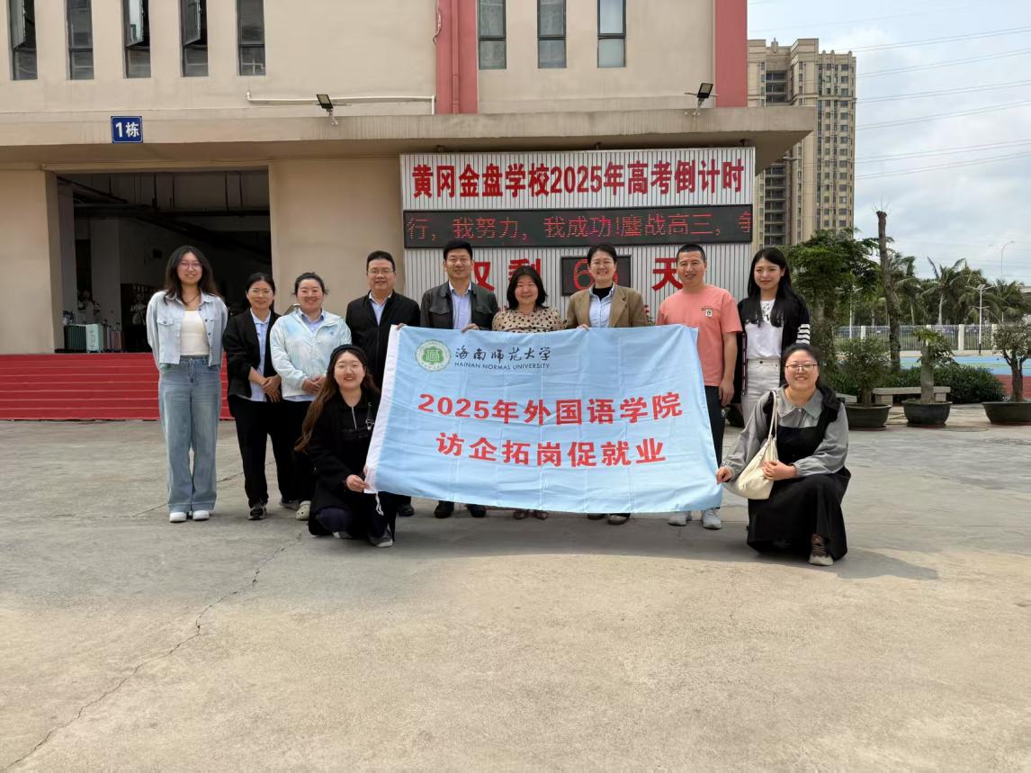 2025年4月3日上午10点,外国语学院走访海口黄冈金盘学校,并看望在此学校工作的校友。外国语学院党委副书记杨白全、2025届毕业生辅导员朱大珩、2022级辅导员金铭以及外国语学院3名毕业生,海口黄冈金盘学校校长傅文祥、教学副校长刘志勇、教研主任王祥顺、教务主任朱兰、2022届校友刘殊贝、2024届校友林雨出席座谈会。