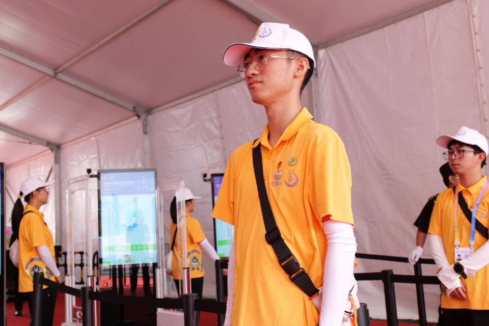 作为消博会门禁组的一名志愿者,2023级英语2班的黄陈艺田同学的主要工作是引导人们依次通过RFID射频门,并确保排队人员与正在识别的人员保持安全距离,避免干扰机器对人脸和证件的识别,这段服务经历在他心中留下了难以磨灭的印记。