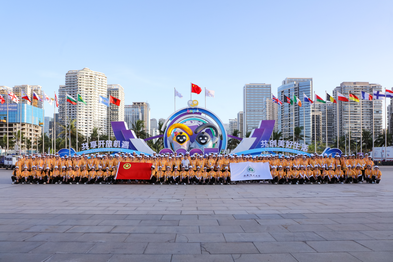 在消博会举办期间,海南大学外国语学院的45名志愿者踊跃投身服务。他们分布于展会的酒店媒体服务组、特许商品销售组、护照打卡礼品兑换组、宾客接待组、迎送保障组、要客接待组、门禁组、票务组以及安检组,以专业与热情彰显青春风采。