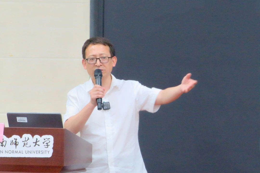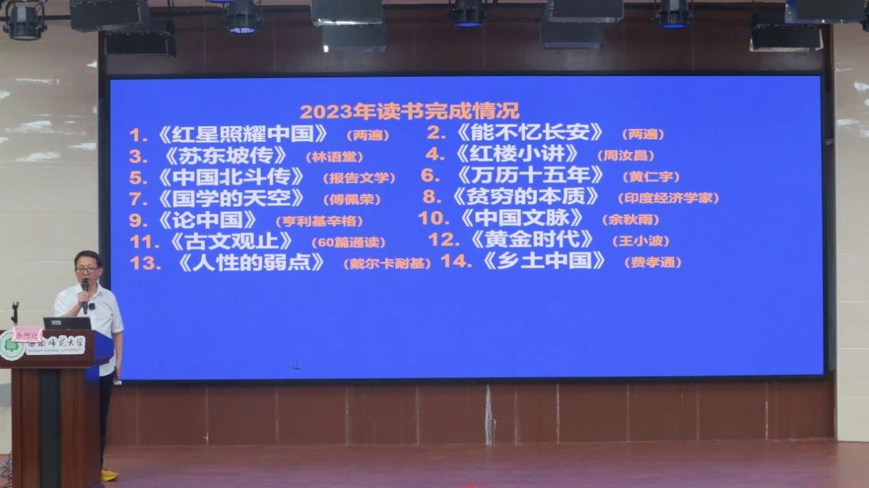 余老师分享海南师范大学求学旧照与校园生活,回顾毕业至今仍然心系母校。随后,他讲述中英文双语写作历程、文章创作故事,强调“终身学习”理念;展示2022-2023年读书成果,结合自身经验提醒外语专业同学重视母语与民族文化;以自身跑步习惯为例,建议同学们培养热爱的运动。最后,余老师借名人名言,寄语同学们锤炼自身本领,希望大家的人生稳步前行。