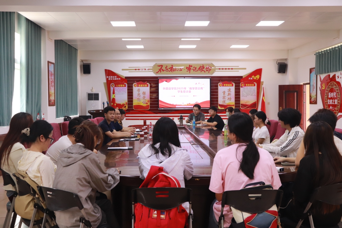 为了更加深入、全面地了解学生的学习需求,切实采取有效措施提升教学质量,为师生之间搭建一个沟通交流的优质平台,2025年5月29日中午,外国语学院在外语楼党员活动室举行2025年“教学质量月”学生座谈会。