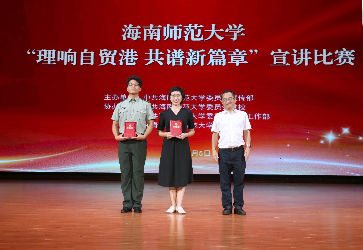 6月5日晚,海南师范大学“理响新时代 共谱新篇章”宣讲比赛在桂林洋校区大学生活动中心举行。本次比赛由校党委宣传部主办,共有来自各学院的20名师生同台竞技。经过激烈角逐,我院教师张婉悦凭借出色表现荣获教师组二等奖。