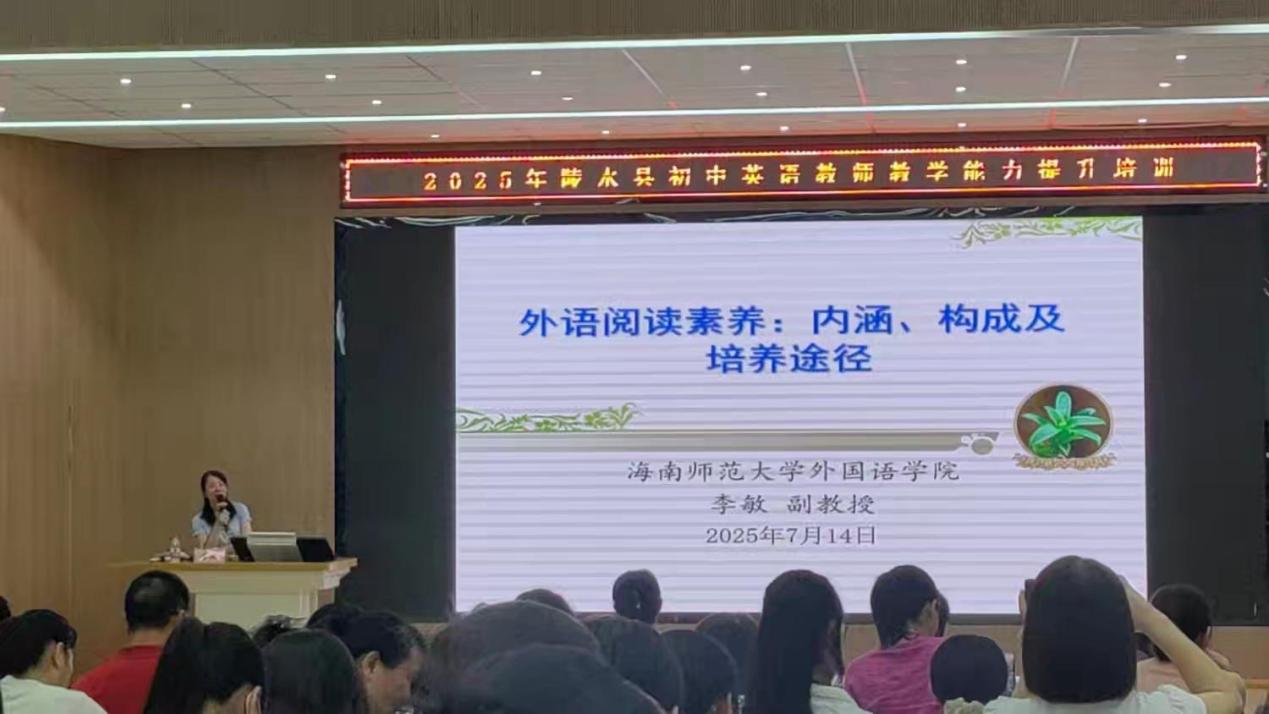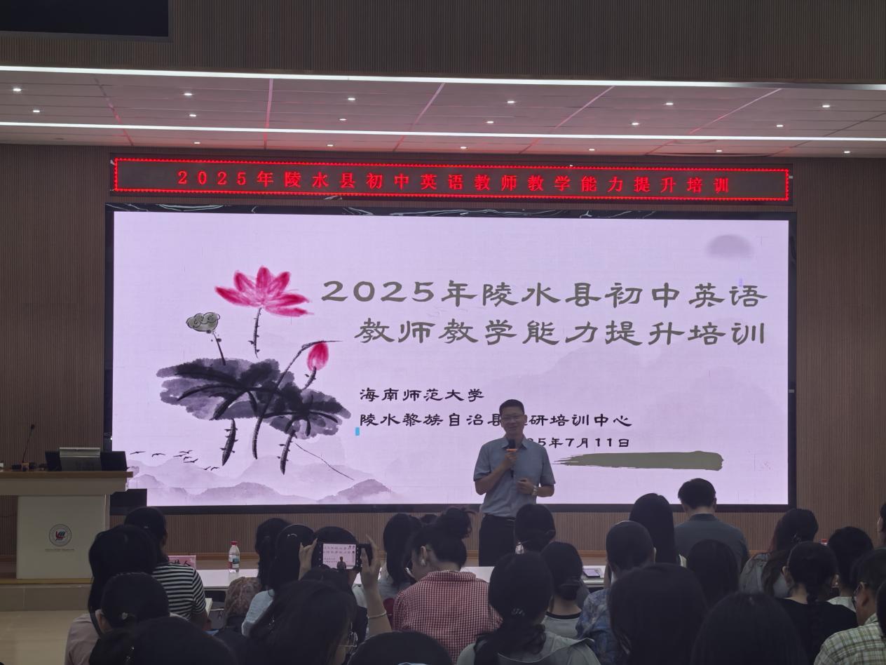 为深入贯彻党的教育方针,落实立德树人根本任务,积极响应海南省委、省政府关于全面深化新时代教师队伍建设改革及服务自贸港建设的战略部署,海南师范大学外国语学院党委于2025年7月11日至14日,组织实施了"2025年陵水县初中英语教师教学能力提升培训"项目。本次为期四天的培训覆盖陵水县全体初中英语专任教师,旨在系统提升其教学实践与教育研究能力,助力陵水县基础教育高质量发展。此次活动是外国语学院党委发挥专业优势、服务地方教育发展、支撑海南自贸港建设人才战略的重要举措。
