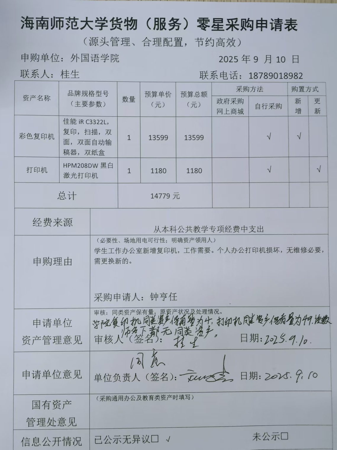 海南师范大学外国语学院为学院采购设备,根据学校相关规定,对预采购设备进行公示,公示期为三天,如有疑义请拨打电话0898-65883218