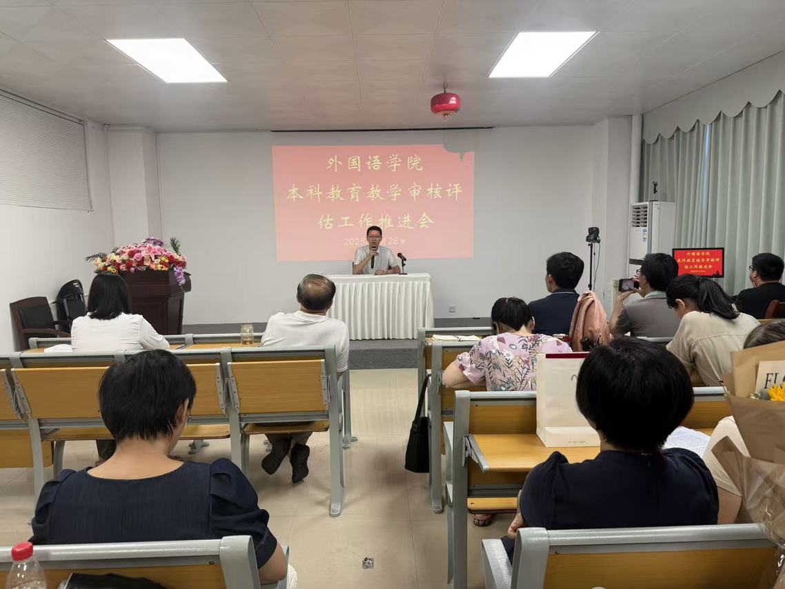 2025年9月28日下午,外国语学院在实验楼二楼案例研讨室召开本科教育教学审核评估工作推进会。学院全体教职工参加会议。外国语学院刘忠喜副院长(主持工作)主持会议。