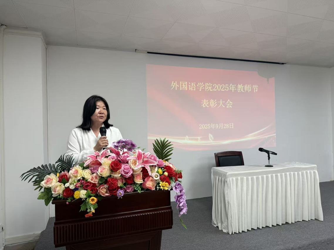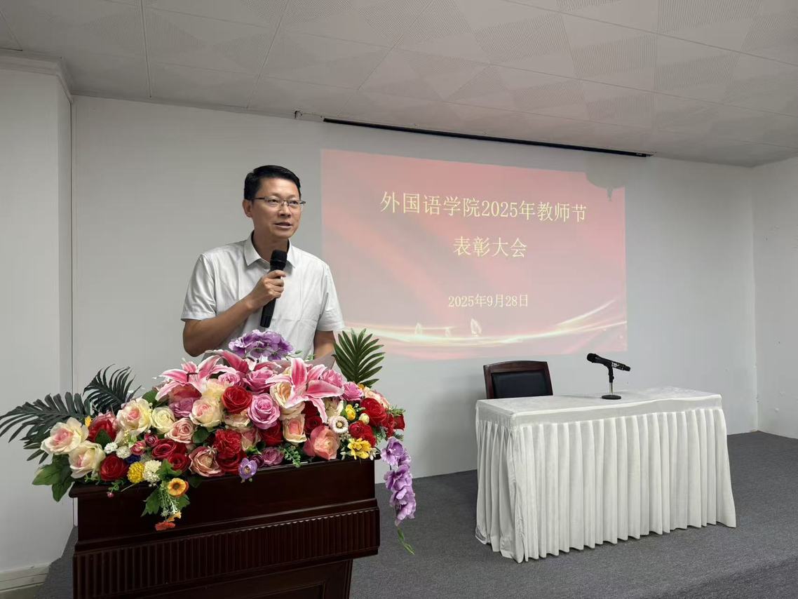 秋兰飘香,硕果盈枝。为庆祝我国第41个教师节,弘扬尊师重教的风尚,2025年9月28日下午,外国语学院在实验楼案例研讨室隆重召开了2025年度教师节表彰大会。外国语学院全体教职工参加此次大会,全体领导班子成员出席此次大会。会议由杨白全副书记主持。