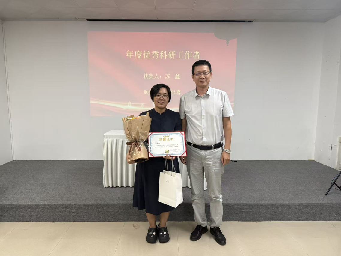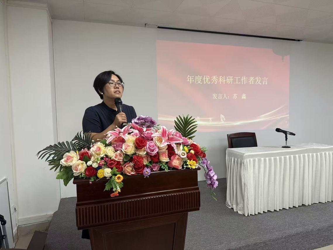 苏鑫老师作为“年度优秀科研工作者”代表发言。她回顾了自己的科研生涯,和与会同仁分享了自己对于科研工作的思考和体会。她表示,科研工作者应在“变”中寻求创新,在“不变”中坚守对科研与教学的热爱。