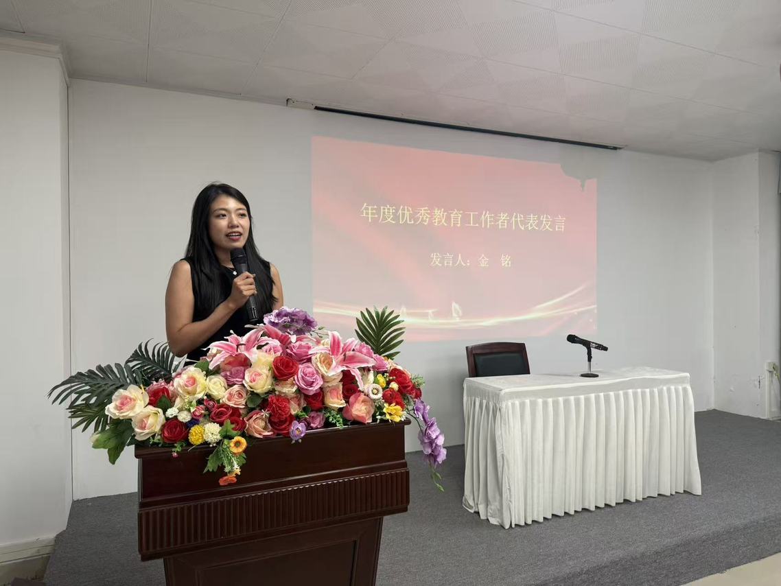 金铭老师作为“年度优秀教育工作者”代表发言。她表示,作为年轻的辅导员,面对纷繁复杂的学生工作,曾经感受到迷茫与压力。但是学院领导的指导和同事的帮助,让她迅速成长,能够独立处理学生工作,更是对“以学生为中心”有了更深刻的理解”。