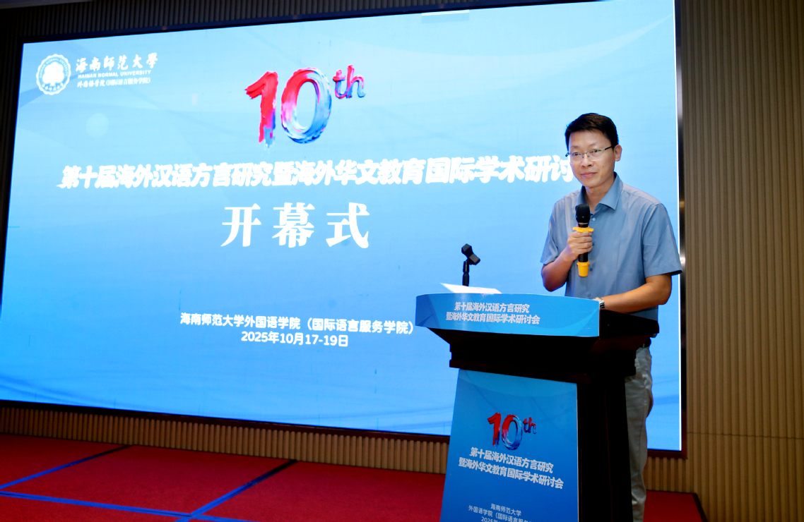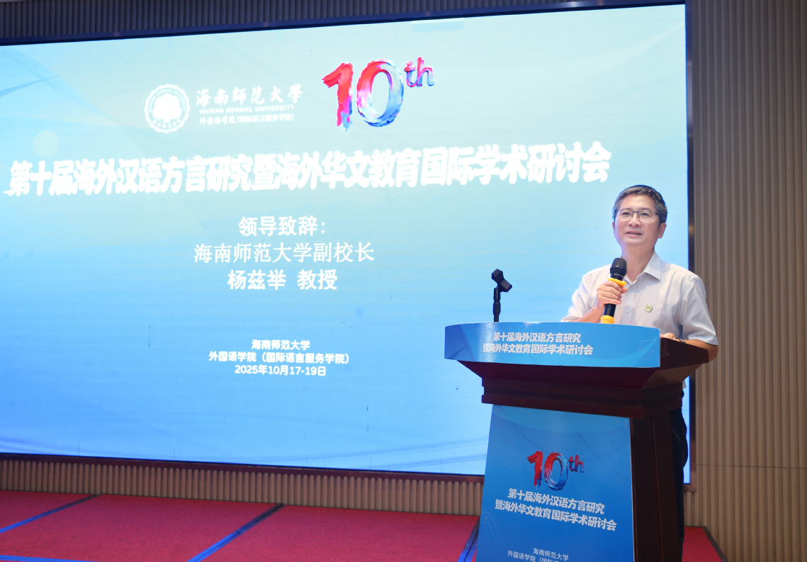 杨兹举副校长在致辞中指出,在全球化与本地化交织并进的今天,探讨“海外汉语方言与海外华文教育”具有重要的现实意义和学术价值。他强调,学校始终高度重视语言文化教育发展,采取多项有力举措,积极服务共建“一带一路”倡议和海南自贸港建设。相信本次会议的召开,必将为海内外专家学者搭建起一个开放、包容、高效的交流平台,推动海外汉语方言与华文教育研究走向深入、结出硕果。