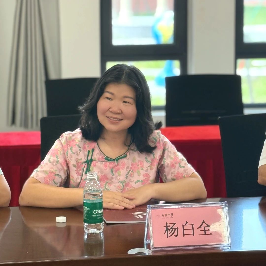 海南中学美伦校区执行校长吴爱姣(外国语学院优秀校友)对海师一行的到访表示诚挚欢迎,并特别介绍了三位在海中教学一线表现突出的海师校友代表。她高度赞赏海师"青年教师助力工程"的创新实践和深入调研的工作作风并分享了美伦校区办学四年来取得的显著成绩:在教育教学改革、中高考成绩等方面实现重大突破。形成了以"四个一"为核心的教育理念体系。