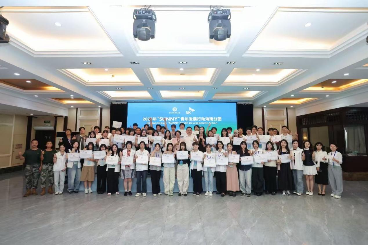 2025年“SUNNY”青年发展行动海南分团开营仪式于9月15日下午在海口顺利举行,来自中韩两国26所高校的50名青年齐聚椰城,开始了以“绿色转型,青年先行”为主题的实践活动,为中韩两国青年交流学习搭建广阔平台,共话环保,促进友谊增长。此次活动围绕人文、生态、发展主题,追寻伟人历史,体验传统文化,聆听专家讲座,交流思想心得,分享收获期待。外国语学院共有三位学子参加此次活动。