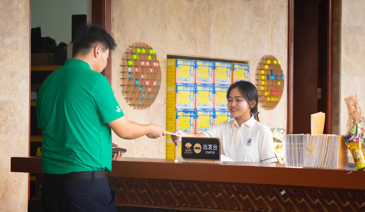 2023级英语5班的王欣怡同学表示自己很荣幸参与到本次“橡树林杯”高尔夫赛事的志愿活动中,作为球员与工作人员间的“语言桥梁”,她不仅要向赛事组委会传递外籍球员的问题和需要,还要传达赛事相关内容与安排,如签到流程、练习场当天的安排以及一些比较琐碎的日常事务等等。从第一个工作内容“美兰机场接机”到球会的前台、练习场、出发台,餐厅各个岗位,每一个工作内容都需要围绕“快而准”的沟通,从而保障服务顺畅。