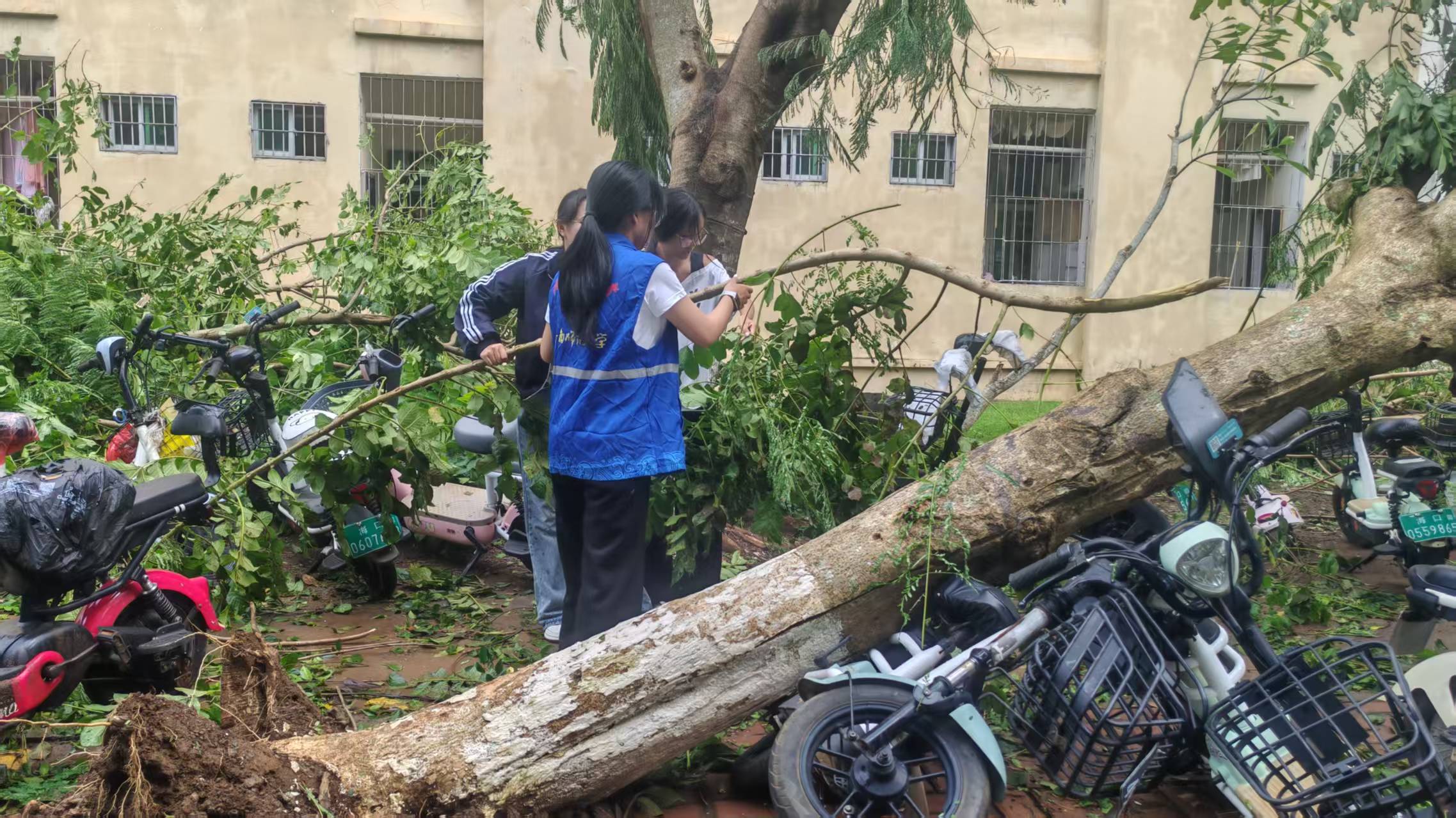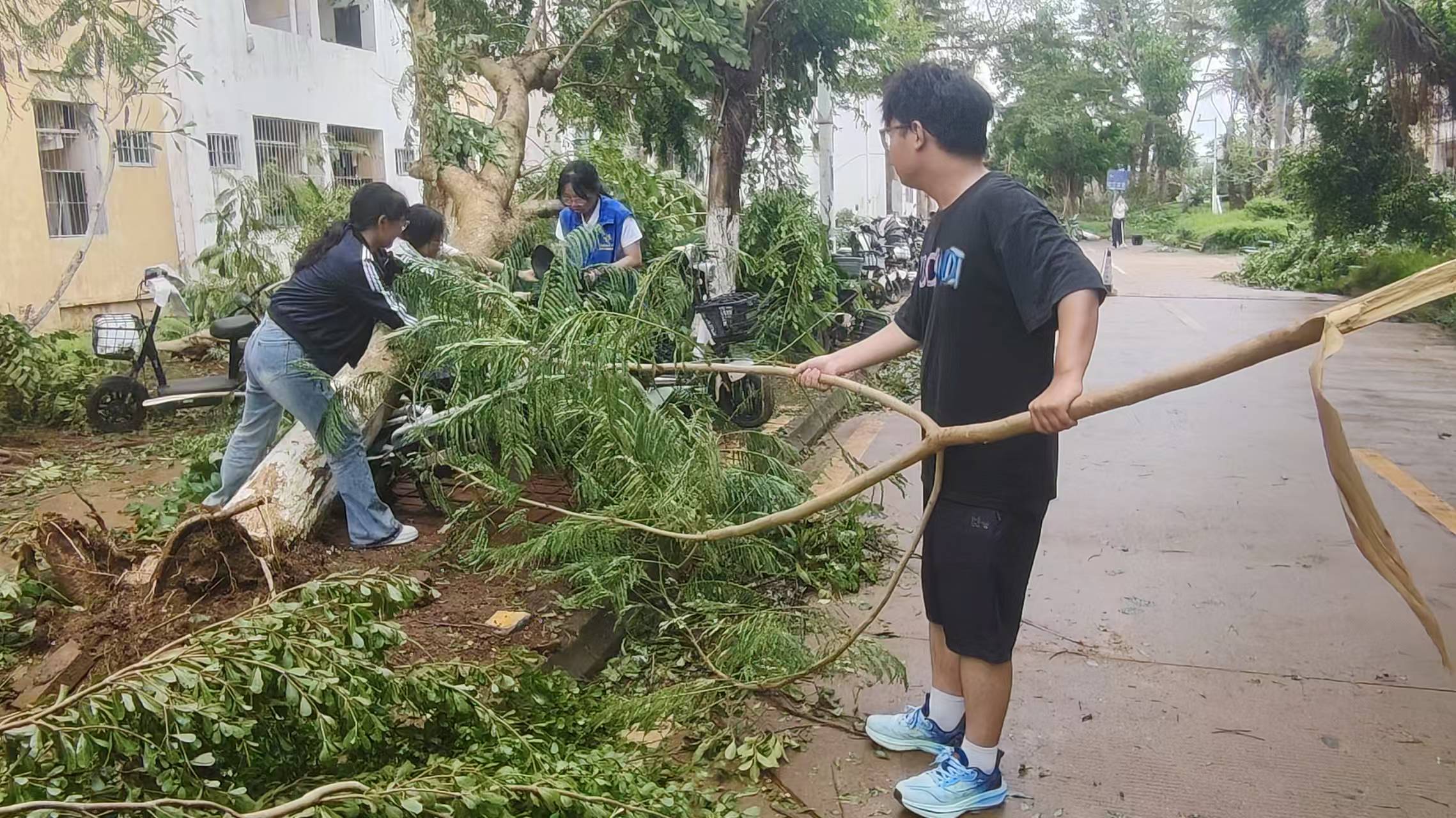 2025年10月5日,受第21号强台风“麦德姆”影响,海南师范大学校园遭受严重风雨袭击,部分区域出现树木倒伏、水电中断等情况。面对灾后校园的凌乱景象,外国语学院迅速响应,组织师生共同投入恢复重建工作。