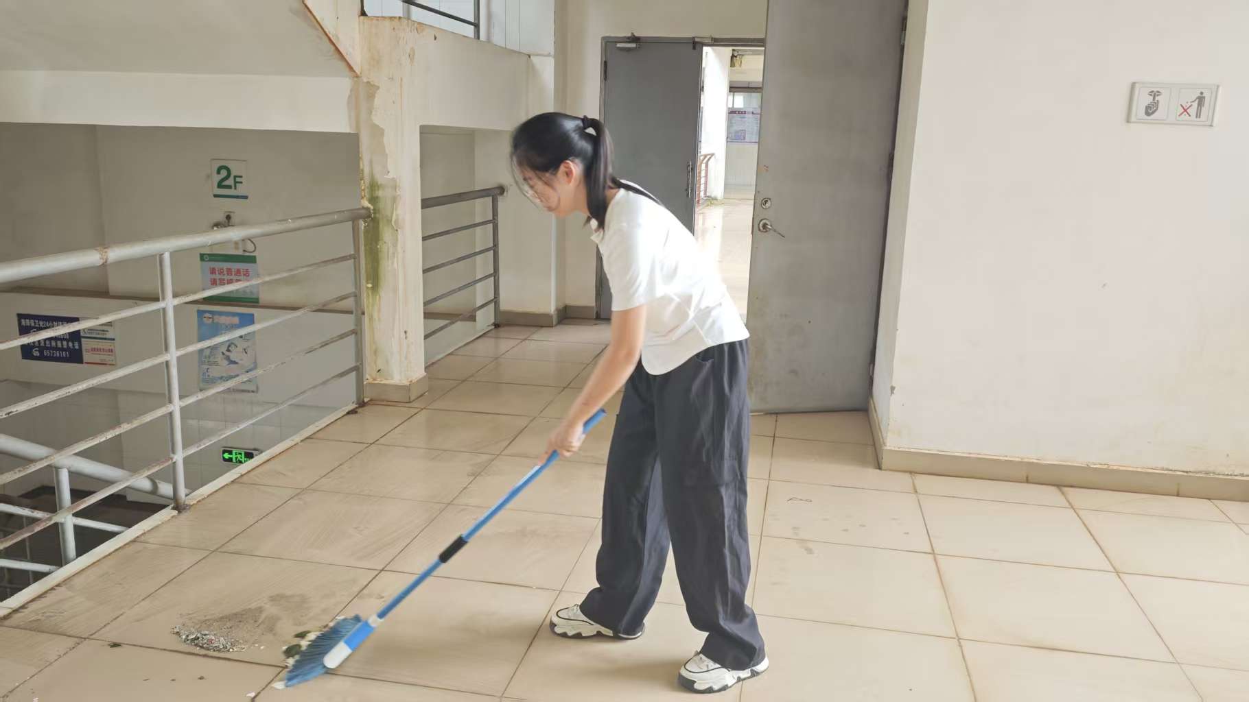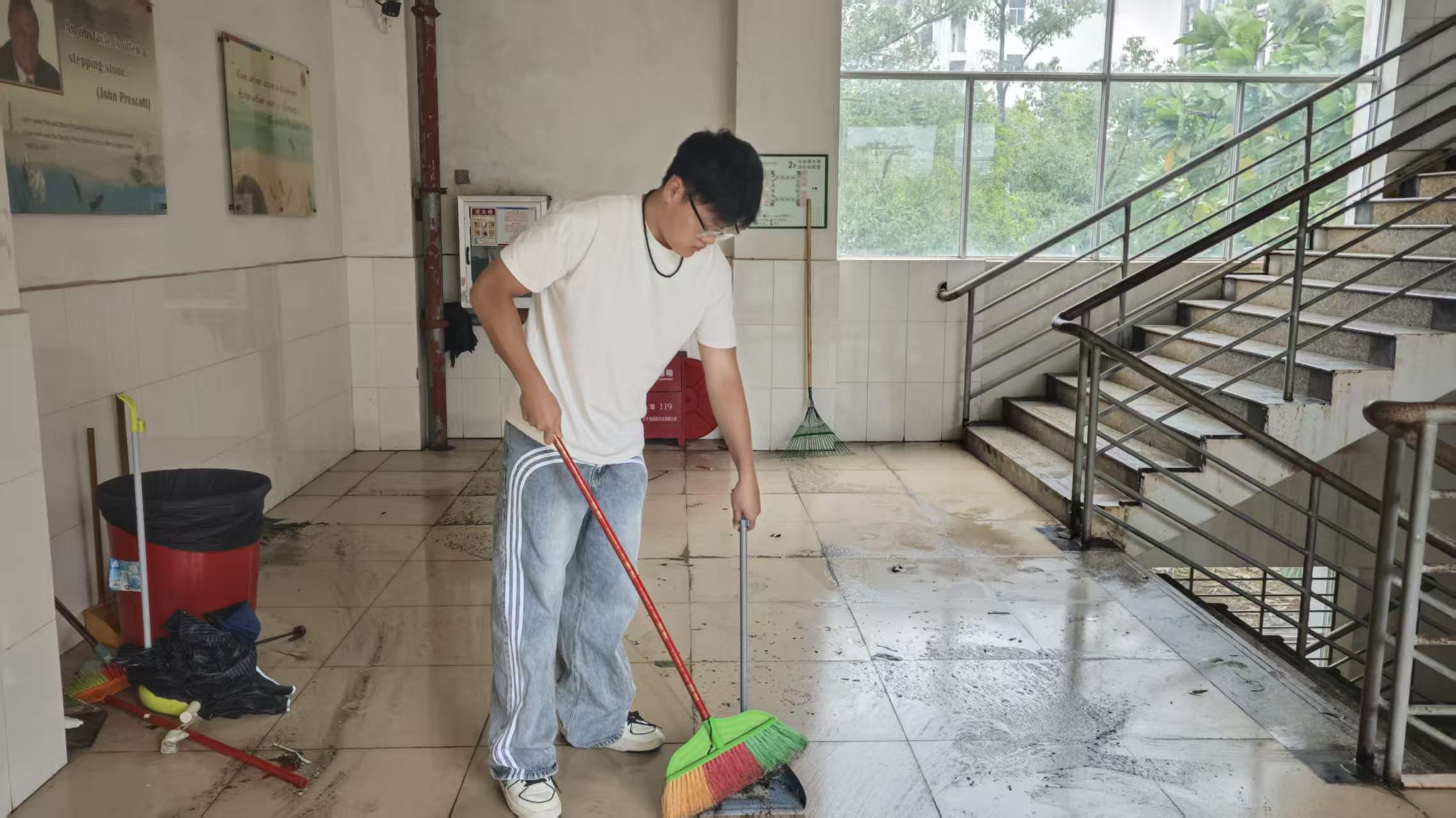 在学院领导的带领下,师生们齐心协力,分工协作,迅速清理主干道倒伏树木、清扫教学楼积水与落叶,恢复路面通行与教学区域整洁。同学们展现出高度的责任感与团队精神,用实际行动诠释了“校园是我家”的主人翁意识。