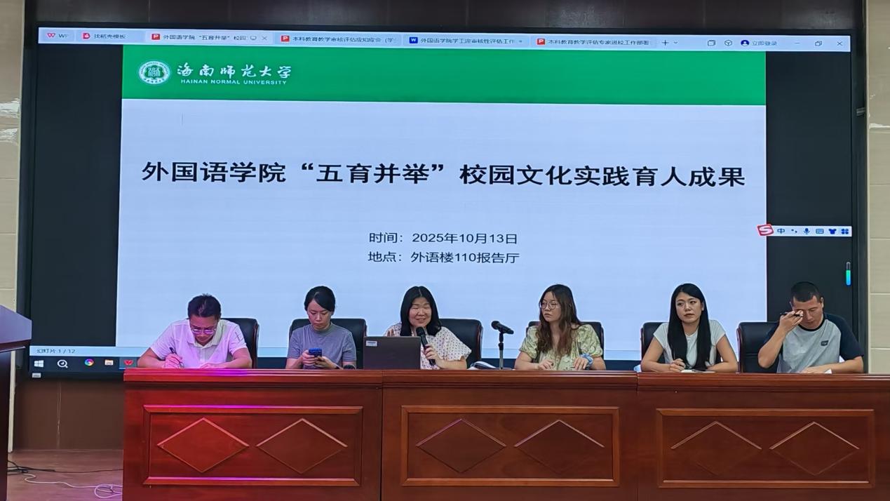 2025年10月13日18时20分,海南师范大学外国语学院学工本科教育教学审核评估专家进校工作部署会于110报告厅召开。外国语学院党委副书记杨白全,2022级辅导员金铭,2023级辅导员李敏,2024级辅导员钟亨任、王怡馨,2025级辅导员朱大珩出席会议。外国语学院全体班干部、团学干部参加此次会议。本次会议由王怡馨老师主持。