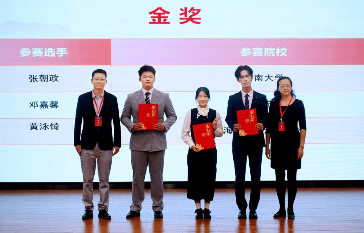 11月1-2日,第二十六届海南省高校大学生外语能力大赛暨2025年“外研社・国才杯”“理解当代中国”全国大学生外语能力大赛(海南赛区复赛)在海南师范大学桂林洋校区举行。凭借扎实的语言功底、出色的跨文化沟通能力与对中国故事的深刻解读,外国语学院英语语言文学专业研究生李静、邹绮雯及英语笔译专业研究生杨欢欢、邓嘉馨、杨洋五位同学表现突出:2025级外国语言文学李静、邹绮雯取得英语笔译赛项省级金奖,2024级英语笔译杨欢欢取得英语口译赛项省级金奖,2025级英语笔译邓嘉馨获英语演讲赛项省级金奖,2025级英语笔译杨洋夺得英语综合能力赛项省级金奖,展现了外国语学院研究生卓越的专业素养与综合能力。